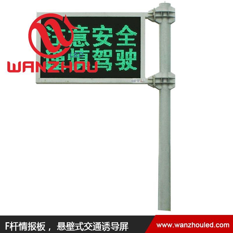 懸臂式交通誘導(dǎo)屏又叫道路可變信息標(biāo)志,F(xiàn)桿情報(bào)板,是屬于道路標(biāo)志標(biāo)牌的一種,通過LED模組發(fā)出不同顏色的光來提醒司機(jī)道路的擁堵情況,暢通為綠色,擁擠為橙色,堵塞為紅色,司機(jī)根據(jù)顯示顏色的不同選擇出行路線。同時(shí)一般交通誘導(dǎo)屏還會(huì)有信息提示模塊,可以用來提示出現(xiàn)道路擁堵的原因,施工、車禍地點(diǎn)、強(qiáng)風(fēng)、濃霧等警示標(biāo)語,還可顯示簡(jiǎn)單的圖形、路線圖,以便駕駛?cè)藛T能更好的掌握目前的路況情況,避免交通阻塞,減少交通事故的發(fā)生。